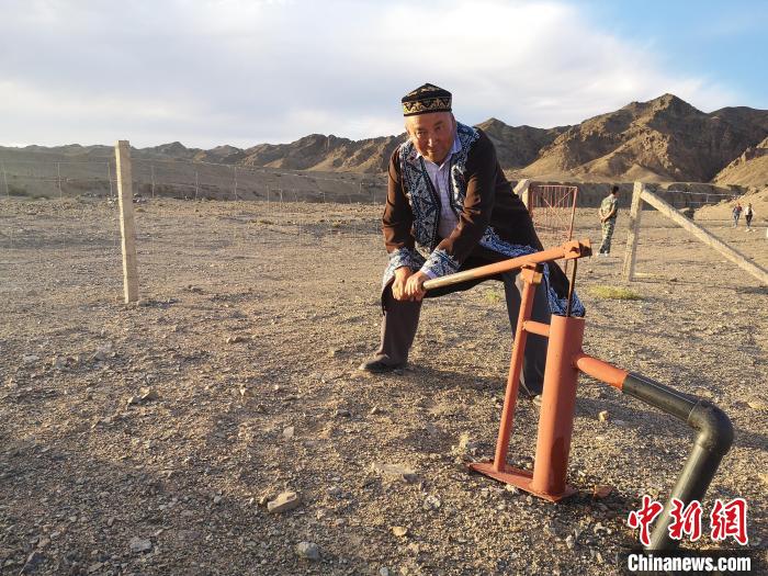 “以前這些水流到山腳下就消失了,這個飲水工程能把水蓄起來,隨時都能用。”達(dá)吾列提拜通過壓水井將蓄水池的水壓上來,沿著水管的另一頭,牲畜飲水槽慢慢被灌滿,“如果是人飲用,拔掉水管就可以接水,人和牲畜用水分開,干凈衛(wèi)生”。