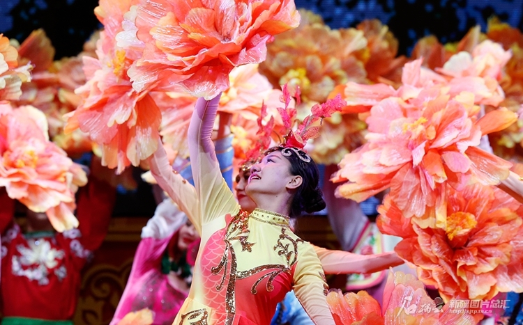 20日晚,演員在第六屆中國(guó)新疆國(guó)際民族舞蹈節(jié)開(kāi)幕式上踏歌起舞。 石榴云/新疆日?qǐng)?bào)記者謝龍攝