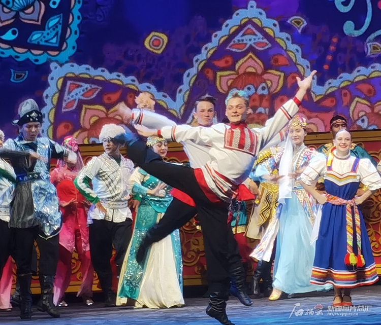 20日晚,俄羅斯藝術(shù)家在第六屆中國(guó)新疆國(guó)際民族舞蹈節(jié)開(kāi)幕式上表演民族舞蹈。 石榴云/新疆日?qǐng)?bào)記者劉萌萌攝