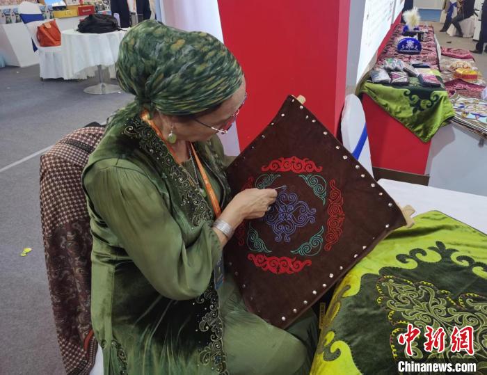 “哈薩克刺繡,是國(guó)家級(jí)非物質(zhì)文化遺產(chǎn)項(xiàng)目,采用純手工繡制,圖案以動(dòng)物、花草為主。”新疆昌吉回族自治州文化館非遺干部孟昱杉告訴記者,“此次參展我們帶了坐墊、靠枕,以及小孩服裝等多種繡品。”