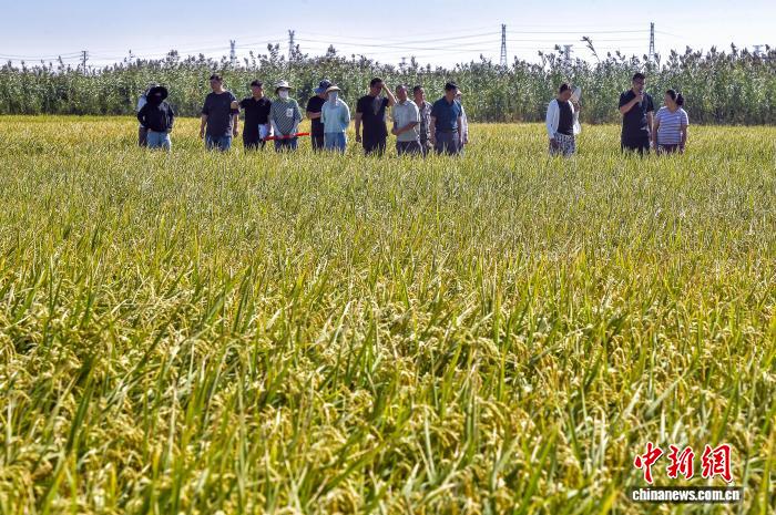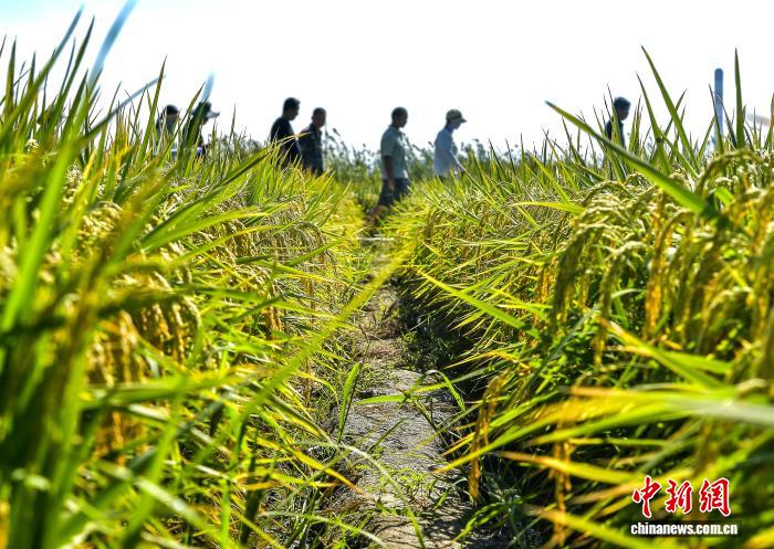 8月28日,正值水稻灌漿結(jié)實(shí)的關(guān)鍵時(shí)期,新疆烏魯木齊市米東區(qū)在萬畝綠色優(yōu)質(zhì)高效水稻品種及機(jī)插秧高產(chǎn)示范區(qū)開展水稻新品種、新技術(shù)現(xiàn)場(chǎng)觀摩會(huì)。邀請(qǐng)農(nóng)業(yè)專家、農(nóng)業(yè)服務(wù)技術(shù)人員以及水稻種植大戶等,現(xiàn)場(chǎng)觀摩千畝連片水稻高產(chǎn)種植管理模式,水稻除草篩選實(shí)驗(yàn)效果,了解高產(chǎn)水稻新品種及本地種植的優(yōu)質(zhì)水稻品種等,共同探討水稻種植新技術(shù)。中新社記者 劉新 攝