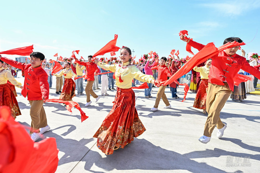 中共中央總書記、國家主席、中央軍委主席習(xí)近平率中央代表團(tuán)23日下午乘專機(jī)抵達(dá)烏魯木齊,出席新疆維吾爾自治區(qū)成立70周年慶?;顒?dòng)。習(xí)近平等在機(jī)場和烏魯木齊市區(qū)受到新疆各族群眾的熱烈歡迎。