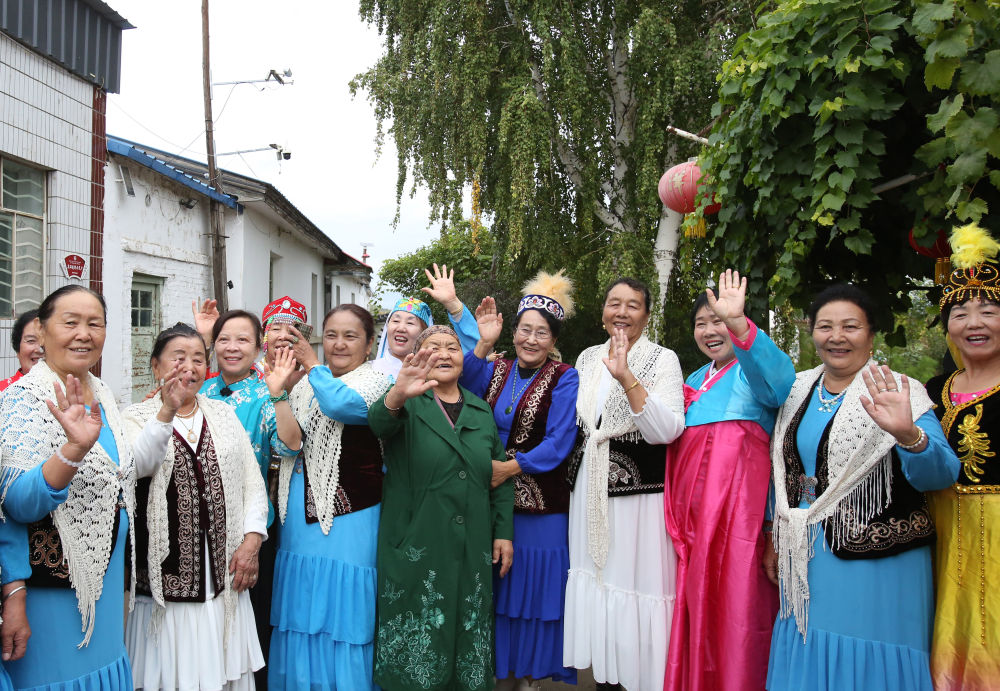 2025年9月9日,新疆阿勒泰地區(qū)阿勒泰市紅墩鎮(zhèn)的老人在“戶兒家”文化大院合影,該鎮(zhèn)居民由漢族、哈薩克族、維吾爾族、蒙古族等11個民族組成。“戶兒家”源于清末,是哈薩克族對甘肅、山西、陜西等省遷居紅墩鎮(zhèn)的40戶漢族居民的稱呼。100多年來,“戶兒家”幾代人與各族群眾相互融合、共同發(fā)展,成為各民族相互交融的典范。