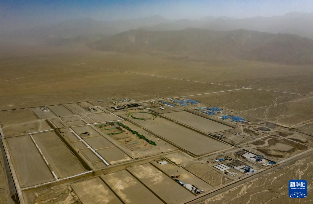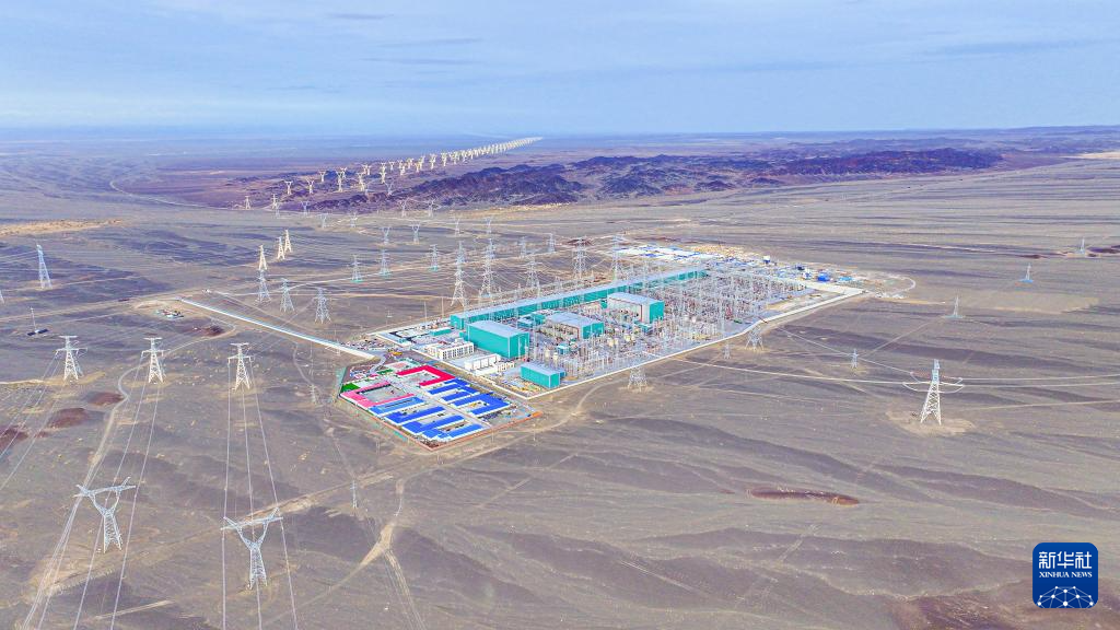 9月22日在新疆巴音郭楞蒙古自治州若羌縣拍攝的三峽集團(tuán)“疆電外送”第四通道電源項(xiàng)目施工現(xiàn)場(無人機(jī)照片)。