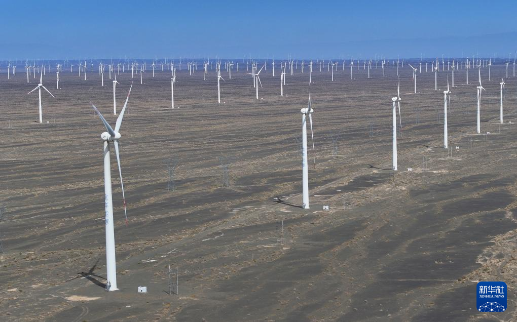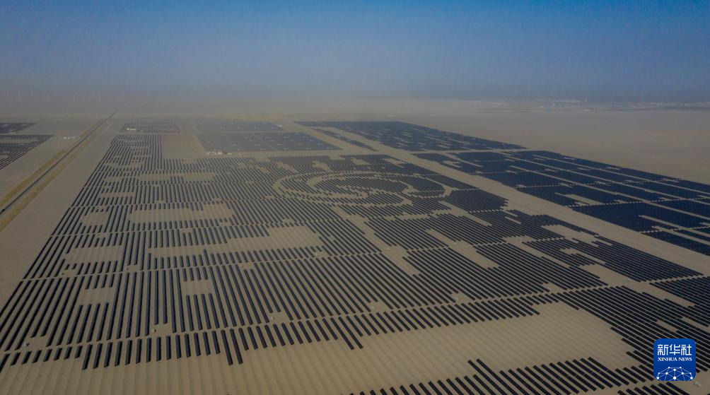 昔日的戈壁荒漠,如今由太陽能光伏板匯聚成“藍(lán)色海洋”,由風(fēng)力發(fā)電機(jī)組成“白色森林”,正孕育著無限“風(fēng)光”。