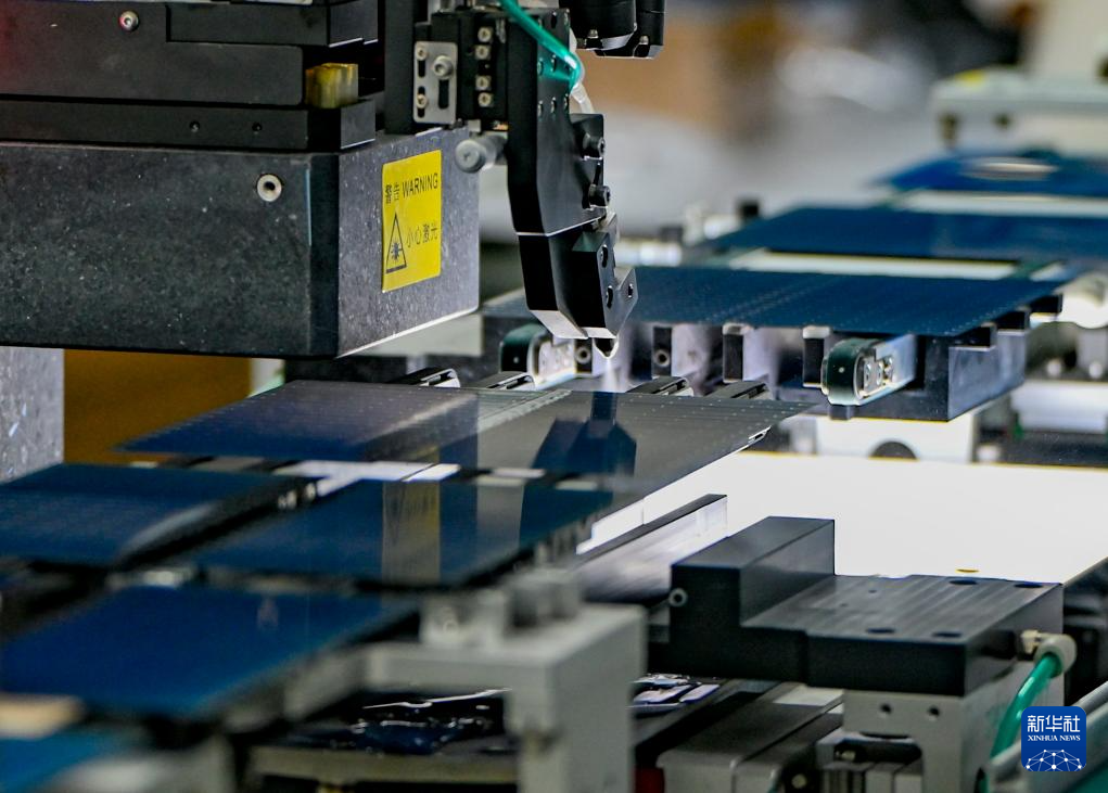 9月22日,在新疆巴音郭楞蒙古自治州若羌縣的國晟企誠新能源有限公司,全自動(dòng)劃片機(jī)在切割光伏電池片。