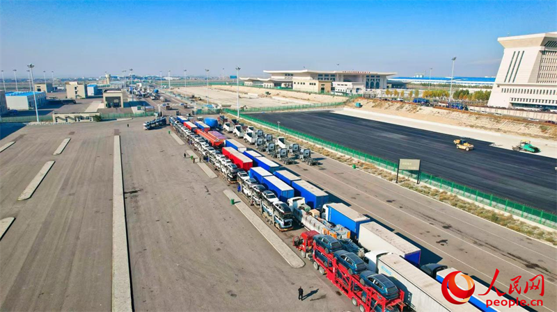 在霍爾果斯公路口岸,嶄新的國產汽車列隊如龍,“擺渡人”金虎正在等待出關。