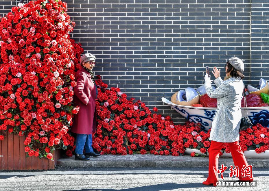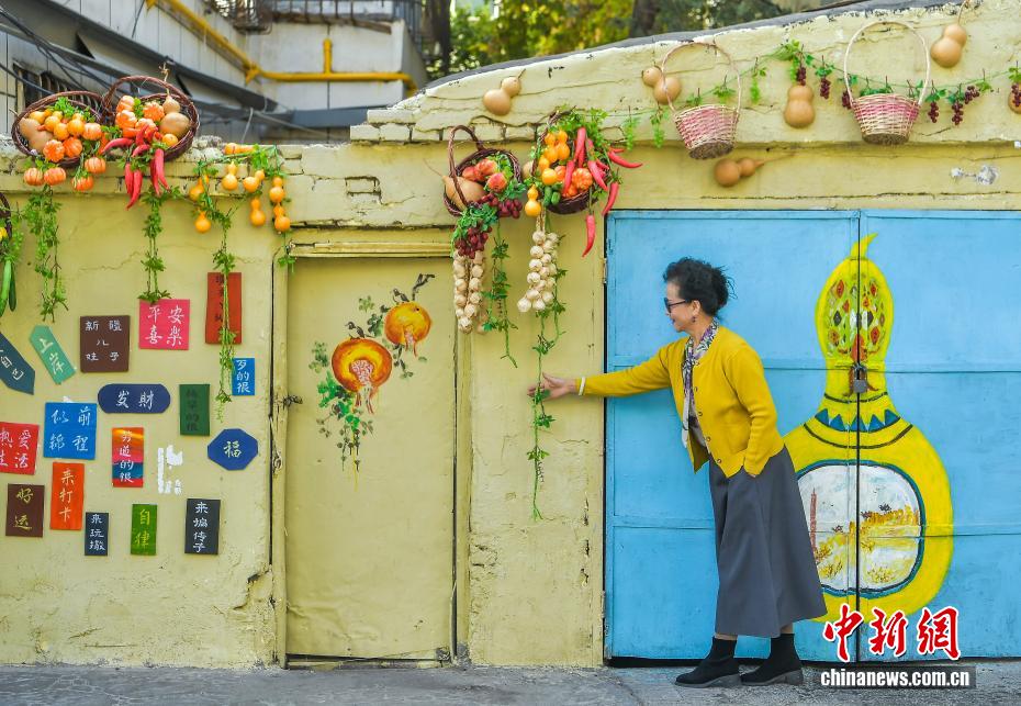 10月10日,新疆烏魯木齊市永和巷,游客從巷道中的文化墻前走過。永和巷是烏魯木齊市的一條老巷道,也是美食聚集地,周邊分布眾多文化、旅游、金融等場所。提升改造后的永和巷,新增6處中華傳統(tǒng)文化和當(dāng)?shù)孛褡逄厣拇蚩c(diǎn)、文化墻以及4個(gè)休閑小廣場,成為市民及游客的打卡新地標(biāo)。(中新社記者 劉新 攝)