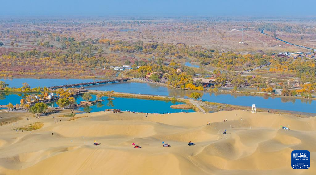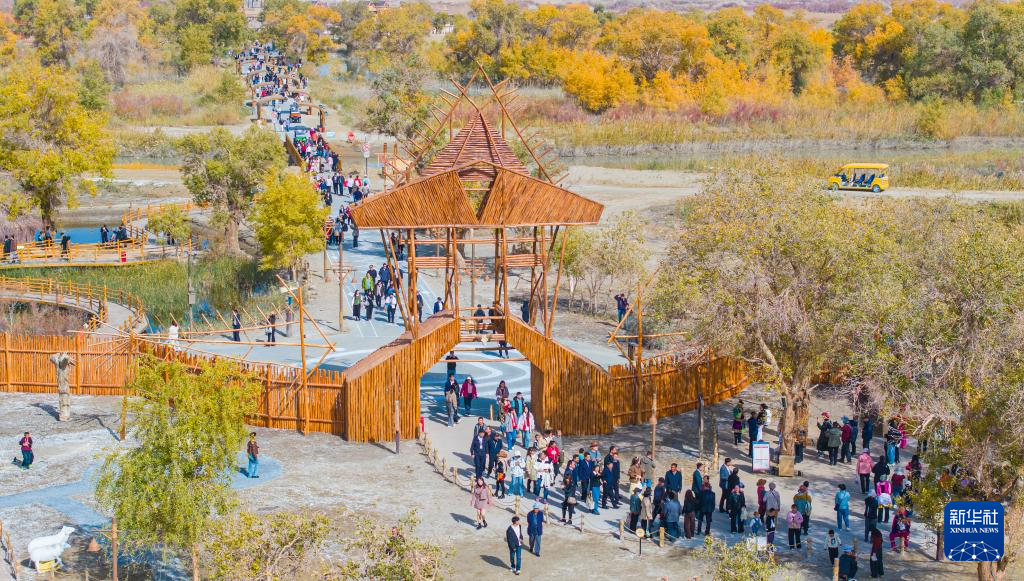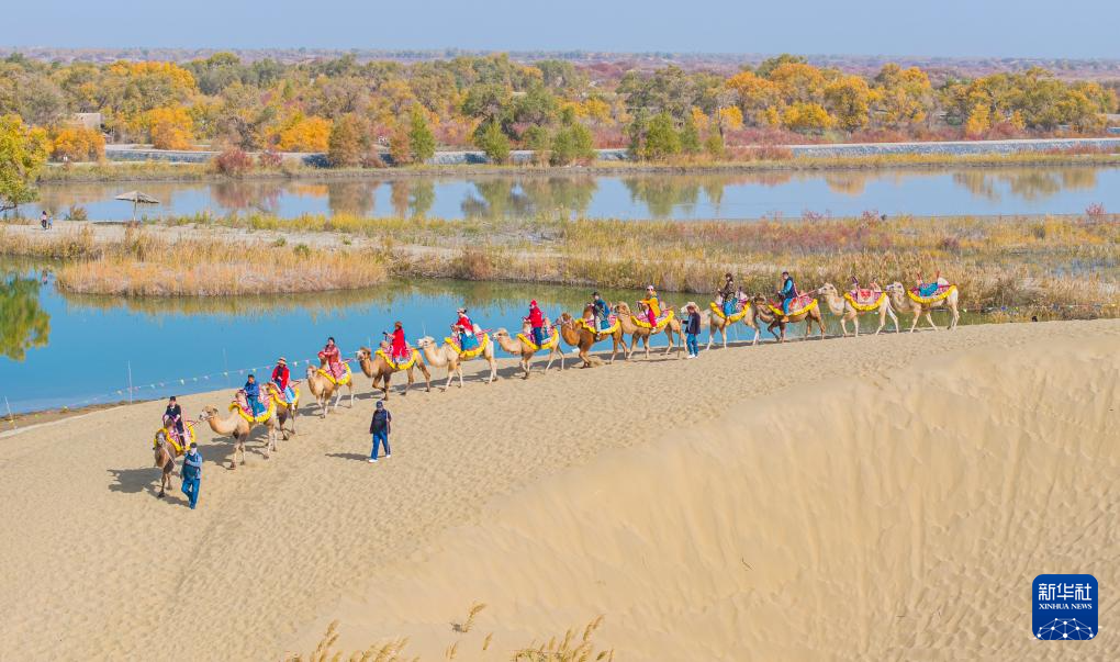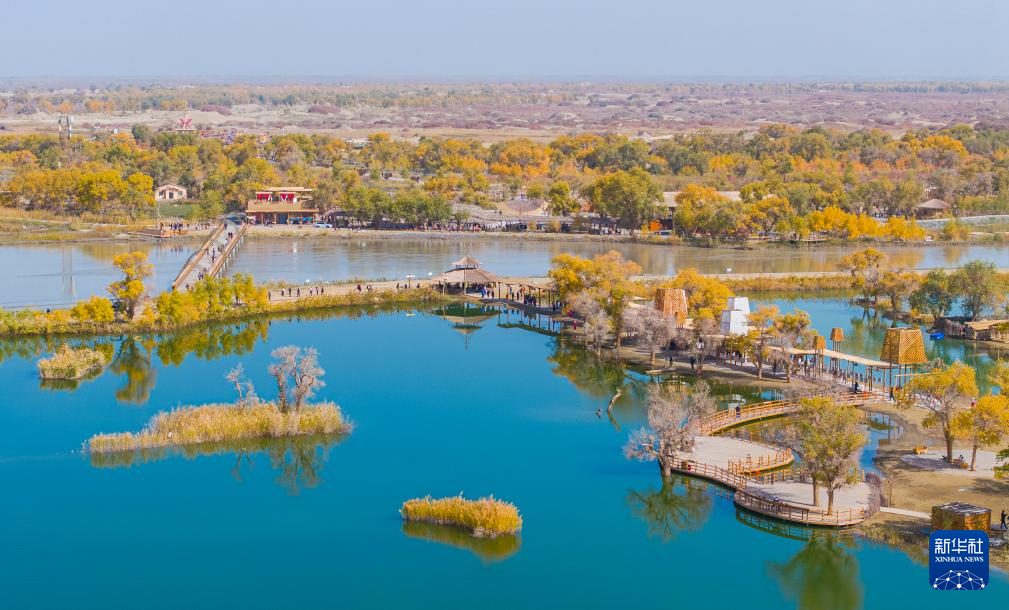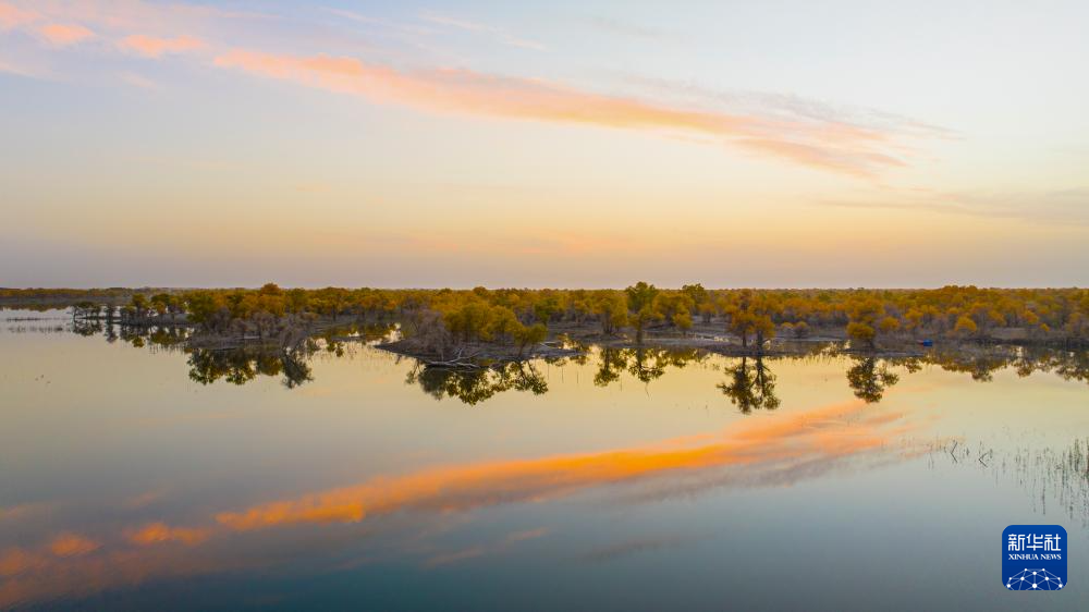 金秋時(shí)節(jié),新疆巴音郭楞蒙古自治州尉犁縣境內(nèi)的沙漠胡楊景觀與塔里木河互相映襯,美不勝收,吸引不少游客觀光游覽。