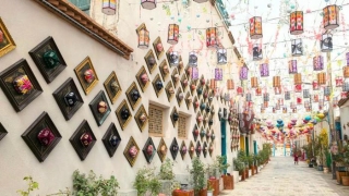在新疆庫車市熱斯坦旅游休閑街區(qū),一條名為花帽巷的巷弄正成為熱門旅游打卡點。五彩斑斕的維吾爾族花帽裝扮著整條街巷,來自各地的游客穿梭其間,選購心儀的花帽。