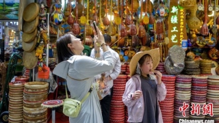 在新疆庫車市熱斯坦旅游休閑街區(qū),一條名為花帽巷的巷弄正成為熱門旅游打卡點。五彩斑斕的維吾爾族花帽裝扮著整條街巷,來自各地的游客穿梭其間,選購心儀的花帽。